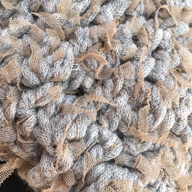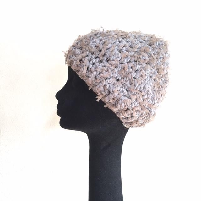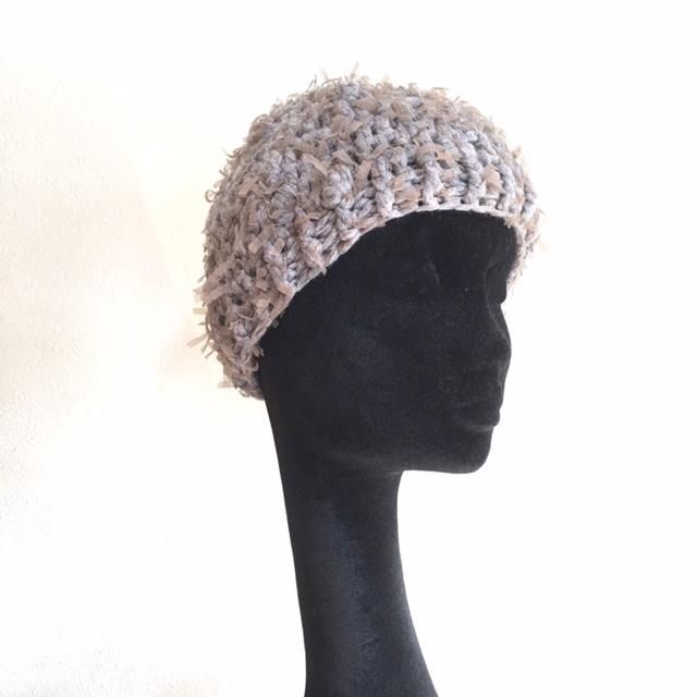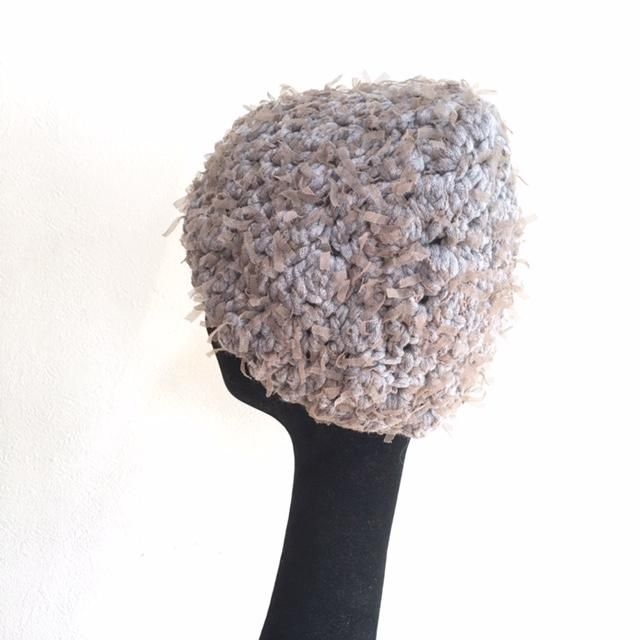 イタリアテープストレッチ糸を使用した玉編みのハンドニットキャップ。